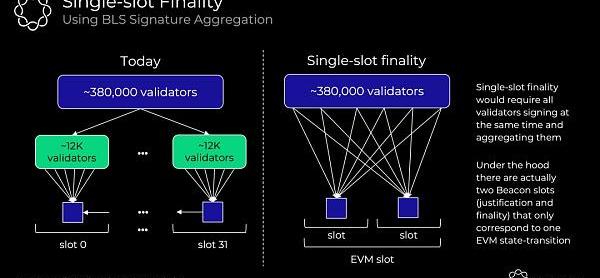 在今天的共識協議中,以太坊只需要1/32的驗證者來證明每個slot。將這種投票擴展到在單個slot中使用BLS簽名聚合的完整驗證器集需要更多的工作。這會將數十萬張選票壓縮為一次驗證:
