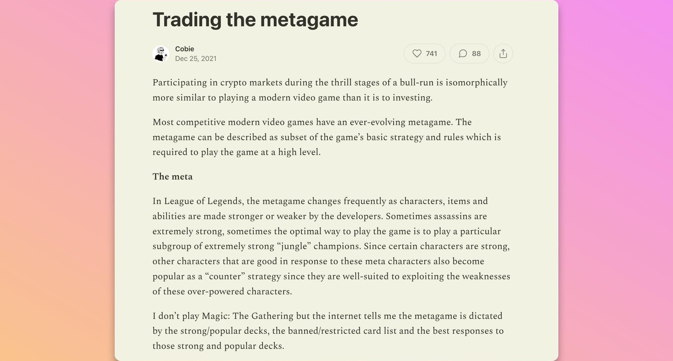 強烈推薦鐵子們閱讀Cobie的文章《交易元游戲》?: