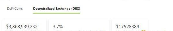 2.過去24小時去中心化交易所的交易量:38.68億美元
