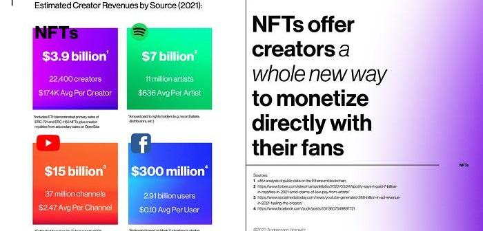 2021年,基于以太坊的NFT的初級銷售,加上OpenSea二級銷售支付給創作者的版稅,總計讓創作者獲得了39億美元收入,而Meta給指定創作者的費用只有10億美元,只有前者的約四分之一。