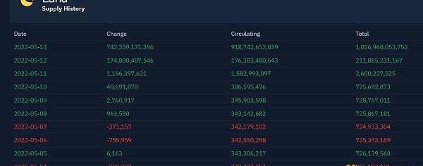 還有如果不了解這個機制的人,是無法想象會有如此巨大的增發量的。交易量有那么大,就是因為這里有巨大的信息差,有人覺得已經跌了99%,有那么大的生態,可以抄底搏一搏。