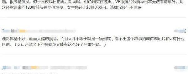 另一方面,有部分觀眾目前還難以理解VR電影的敘事特點,或是認為部分電影在內容方面沒有與VR技術達到良好的配合,導致VR在電影呈現上略顯多余。