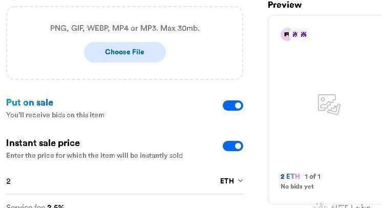 上傳作品并輸入所有詳細信息后,單擊“createitem”按鈕,鑄造NFT,將其出售。