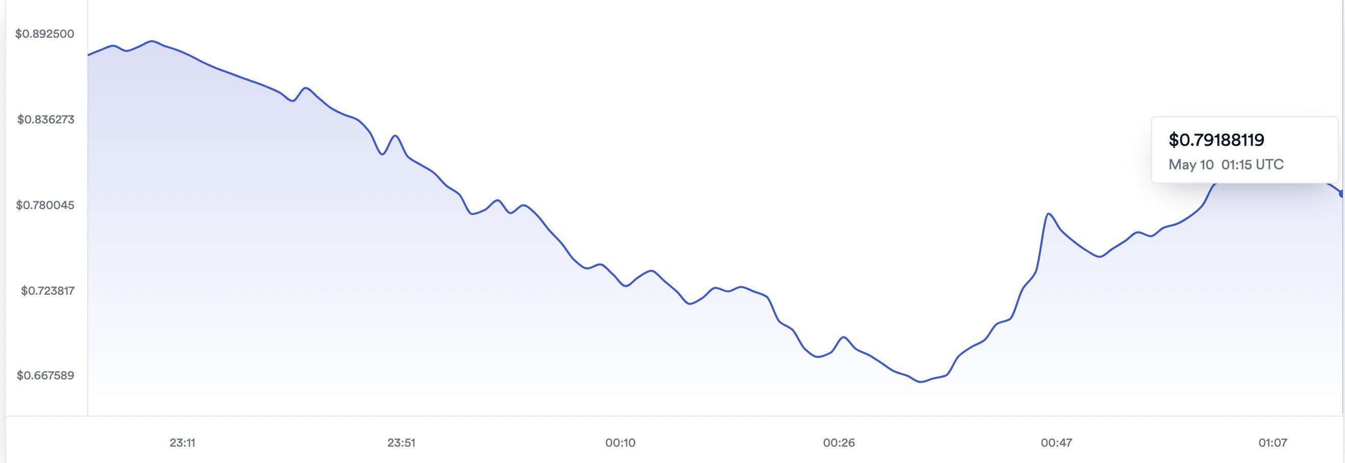 剛剛過去的周末期間,「UST保衛戰」成為了加密貨幣市場的聚焦點,上周以來UST擠兌風險初現,而今日凌晨UST價格錨定狀況崩潰,Chainlink數據顯示,今晨UST兌美元價格一度跌至0.66,脫錨幅度超過30%,即便在撰文期間該數值略有反彈,目前仍僅為0.79左右,脫錨幅度超20%。