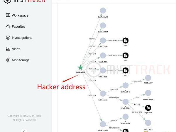 3月30日,慢霧發文稱,此次黑客攻擊的資金來源于幣安提幣,且已將2550萬枚USDC交易為6250枚以太坊,并進行了分散轉移,其中1221ETH轉移到了FTX和Crypto.com。