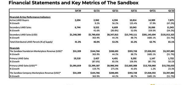 TheSandbox生態系統在2022年第一季度繼續增長,在推出AlphaSeason2游戲時擁有顯著的合作伙伴關系和超過200萬注冊用戶。在過去的這個季度,它也經歷了整體市場回調的影響。