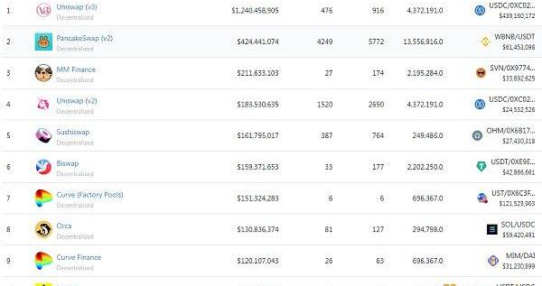 2.過去24小時去中心化交易所的交易量:411.11億美元