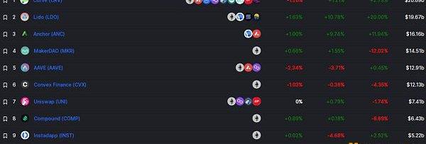 DeFi項目鎖定資產前十排名及鎖倉量數據來源:defillama
