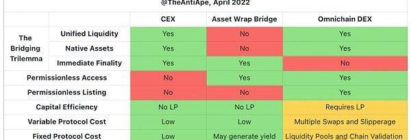 XRP/HKD-4.49%本文為TheAnti-Ape在substack發表的文章“What'swrongwithbridges?Perils,PresentandFutureofCross-ChainCommunication:theroadafterLayerZero”,文章比較了中心化交易所、資產橋、全鏈DEX等主流橋設計以及以及跨鏈通信協議IBC和LayerZero的成本、安全性和效率。