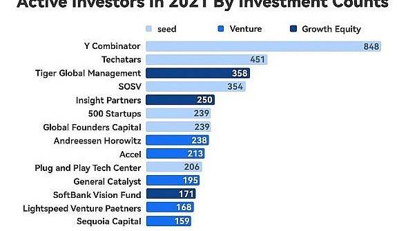 XRP/HKD+1.57%據Crunchbase數據,2021年,知名對沖基金及風險投資公司TigerGlobal參與投資的項目達到了358個,已遠超過a16z、紅杉、光速等一眾知名VC,幾乎每天都會有一筆投資交易產生。其中,領投項目更是達到220個,領投項目的融資總額也超過了300億美元。