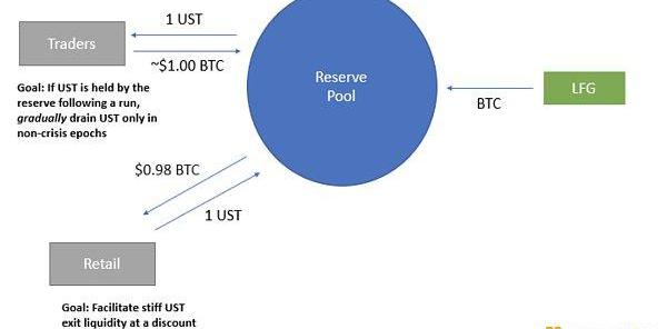 而據JumpTrading在Terra社區發布的治理提案?,這個比特幣儲備池將在UST向下偏離時立即用于支持UST,避免脫錨的情況發生,并依靠交易者在危機解除后補充BTC儲備。
