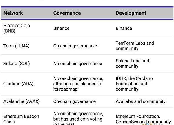 權益證明區塊鏈治理和開發主要由創始團隊推動。這是一個中心化問題,但其中許多網絡仍處于起步階段,需要某種指導來實現技術目標。