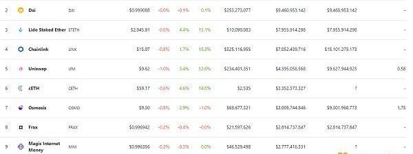 DeFi項目鎖定資產前十排名及鎖倉量數據來源:defillama