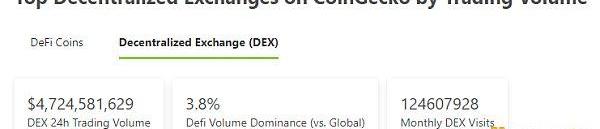 2.過去24小時去中心化交易所的交易量:47.24億美元