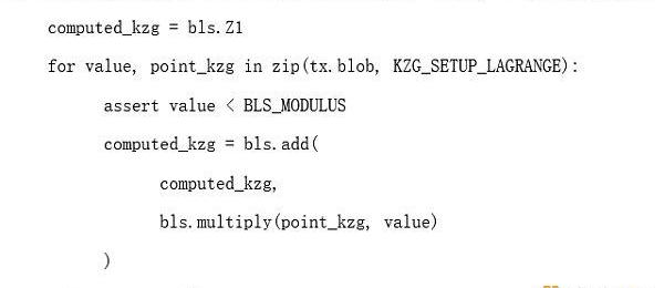 BLS_MODULUS是上述模數,而KZG_SETUP_LAGRANGE是橢圓曲線點的向量,它是基于拉格朗日的可信設置。對于實現者來說,現在將其簡單地視為一個黑盒專用哈希函數是合理的。