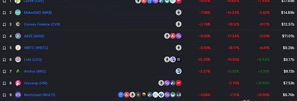 DeFi項目鎖定資產前十排名及鎖倉量數據來源:defillama