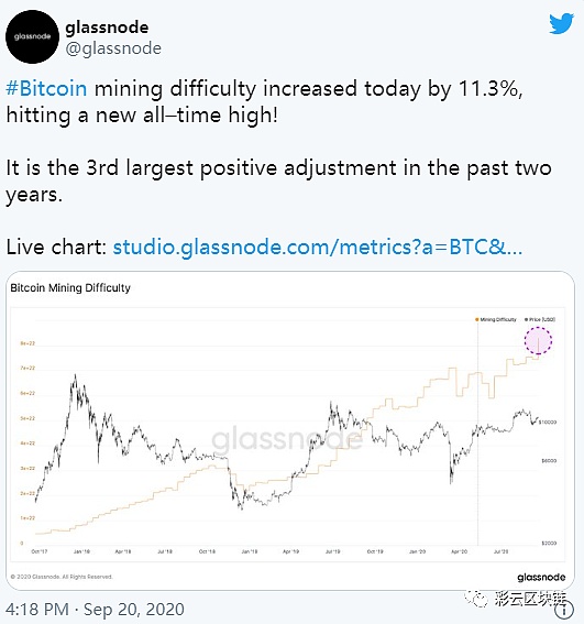 根據比特幣區塊鏈瀏覽器數據,市值排名第一的加密貨幣挖礦難度水平在UTC時間9月20日上午5:55創下了新紀錄。自2020年一月份以來,比特幣(BTC)的難度已經上升了40%。