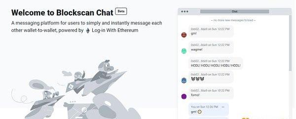 值得一提的是,采用的聊天方式“BlockscanChat”是由創建Etherscan區塊鏈瀏覽器的團隊Blockscan發布的“BlockscanChat”測試版。