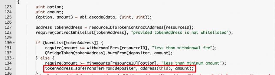 Qubit以及Meter.io的bridge代碼未能處理臨界情況,也就是說,合約的ERC20存款功能可以用來生成虛假的ETH/BNB存款事件證明,而后者成為了目標鏈上提取真實ETH/BNB的憑證。