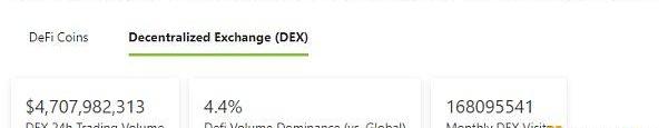 2.過去24小時去中心化交易所的交易量:47.07億美元