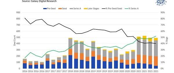 2021年Q4,加密賽道的創業公司獲得A輪融資的量最大,也有大量投資取到了A輪以后。