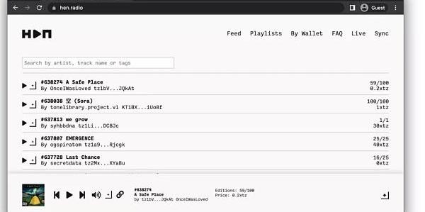 建立在HicetNunc(hen.radio)之上的實驗性音樂分發平臺