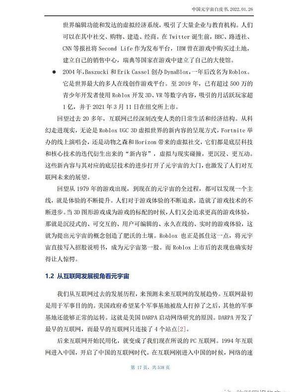 XRP/HKD-2.78%近日,2022《中國元宇宙白皮書》在北京中關村正式全網發布。該白皮書由國科創新研究院首席科學家,中關村數字媒體產業聯盟常務副秘書長,中關村數字媒體產業聯盟元宇宙實驗室執行主任龔才春主編。由北京信息產業協會、中關村數字媒體產業聯盟、中國科技新聞學會大數據與科技傳播專業委員會等組織起草。該白皮書分為緣起篇、現狀篇、技術篇、產業篇、法律與監管篇、倫理與風險篇、經濟篇、人才篇、暢想篇這九個篇章,從元宇宙的緣起、發展現狀、技術支持、相關產業等方面進行了全面、深入、細致的分析、總結和暢想。白皮書全本PDF電子版538頁。