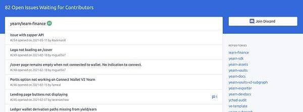 Yearn搭建了一個儀表板,整合了代碼庫中所有的待解決問題。此外,它還設立了電報群,專門為感興趣的參與者提供任務。