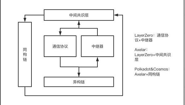 Polkadot和Cosmos的敘事中都提到了異構鏈之間的跨鏈方案,比如substrate和Tendermint鏈與ETH,BTC等鏈之間的跨鏈,基本原理與Axelar和LayerZero并無太大不同,均需要一個中間共識層通過公證人機制完成跨鏈。