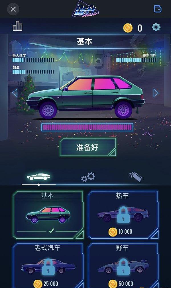 玩家可以在四種類型的汽車中進行選擇,從基本款、熱門車、復古車到豪華跑車,但對于基本款以外的任何汽車包括裝備和汽車顏色,玩家須使用每次完成駕駛獲得的游戲內貨幣進行支付。