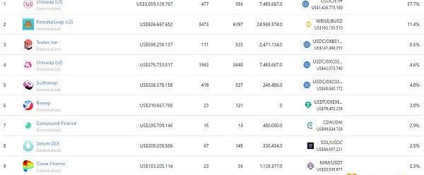 過去24小時去中心化交易所的交易量數據來源:Coingecko
