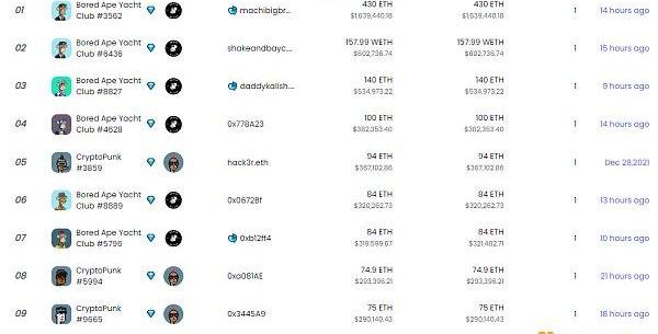 24小時內銷售價格前十的NFT數據來源:NFTGO