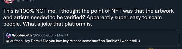 欺詐和抄襲依然繼續困擾著藝術家和創作者。例如,Marvel'sSuperHeroAdventures的數字藝術家和設計師DerekLaufman看到他的作品在他不知情的情況下被NFT平臺Rarible拍賣了。類似這樣的故事很常見。