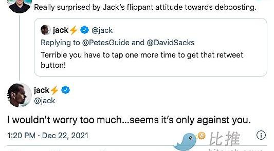 Andreessen顯然對Dorsey對加密貨幣未來的看法不太滿意,他在推特上拉黑了Dorsey,不讓Dorsey看到自己的推文或在平臺上與他交流。