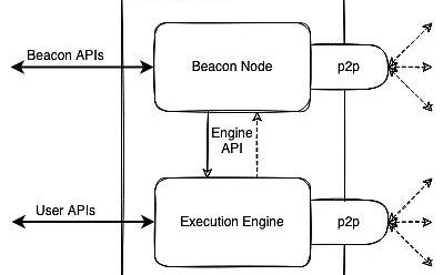 概括來說,合并后,客戶端將從根據PoW鏈轉為根據PoS鏈來決定以太坊的最新有效區塊。此外,客戶端大多數的功能,以及更重要的EVM、它的狀態,和它是如何執行交易的,都保持不變。現在的Eth1和Eth2客戶端分別變成以太坊的執行層和共識層(或叫做引擎)。這意味著Eth1或信標鏈客戶端的節點運行者將需要運行堆棧的“另一半”,以擁有一個完整的驗證節點。