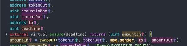 swapTokenForExactToken函數中調用了swapOut函數,而swapOut函數中計算價格是調用的getAmountIn函數。