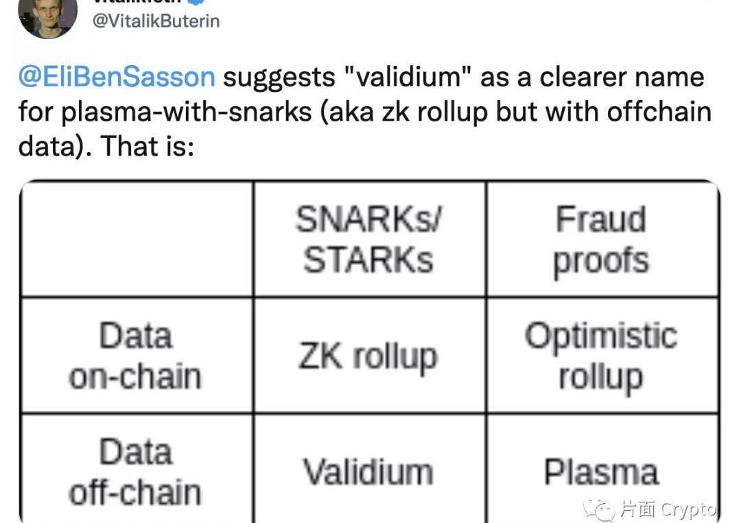 圖中的validium之前沒有提到過,這里解釋一下。validium就是在zkrollup的基礎上,再把要傳到主鏈的部分數據舍棄,讓數據量更少,這樣交易處理起來也更快,還能達到交易免費執行的程度。