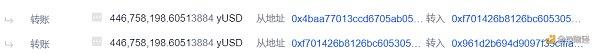 攻擊者使用1,873枚WETH在UniswapV3中獲得745.30萬枚USDC,再通過Curve.fi將372.65萬枚USDC換成338.33萬枚DUSD,然后將DUSD換成4.50億枚yDAI+yUSDC+yUSDT+yTUSD。