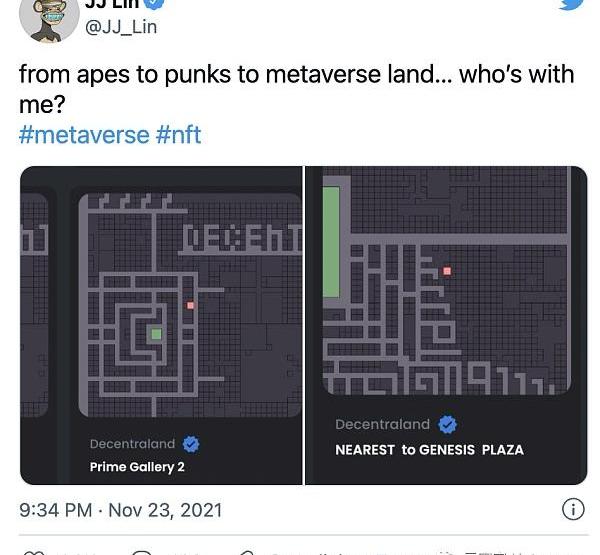 據外媒報導,林俊杰11月23日在推特上貼出他看中的Decentraland虛擬世界,并號召網友“有沒有人一起?”,引起較熱互動。