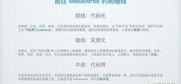 跟《銀河系漫游指南》這本書的框架一致,前往Metaverse的過程中,也有兩條線,明線和暗線。