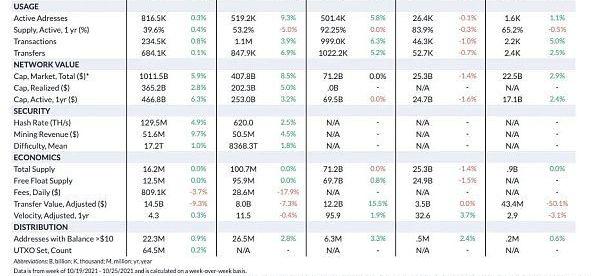 另一個重要因素是現貨BTC對市場的總可用性。BTC被持有的時間越來越長,截至10月25日,超過66%的BTC總供應量已經被持有了至少6個月。由于一些投資者在2021年初的牛市期間拋售,該指標在5月份下降至接近50%。但在4月份之前買入的大部分投資者,似乎在春季崩盤期間一直持有比特幣,導致比特幣上漲了至少180天。
