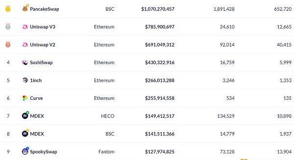 過去24小時去中心化交易所的交易量數據來源:Debank