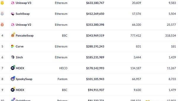 過去24小時去中心化交易所的交易量數據來源:Debank