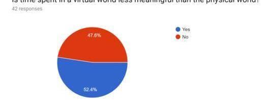 有52.4%的人們認為把時間花在現實世界中相比于虛擬世界更加的有意義。