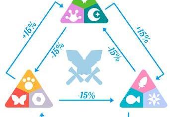上圖:Axie寵物的類型,沿順時分別是:植物類、黃昏類和爬行類;鳥類、黎明類和水生類;野獸類、機甲類和昆蟲類。