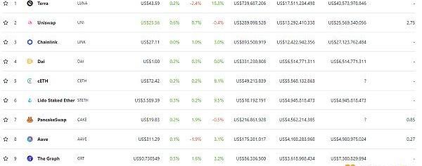 DeFi項目鎖定資產前十排名及鎖倉量,數據來源:Debank