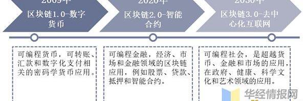 區塊鏈最早的形態是作為比特幣的底層技術和基礎架構,以可編程貨幣的形式存在。當前區塊鏈行業正式進入2.0時代,根據中國信通院預測,2030年區塊鏈行業將逐步成為成熟的數字經濟基礎設施,將超越貨幣、金融的應用,在政府、健康、科學、文化和藝術領域形成去中心化的互聯網,帶來社會各產業模式的改變。