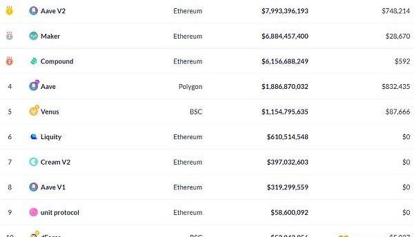 ?DeFi項目鎖定資產前十排名及鎖倉量,數據來源:Debank