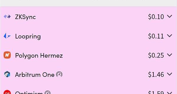 Layer2轉賬ETH的手續費對比?數據來源:l2fees