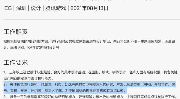 2、開放世界、玩法眾多。崗位要求:高級視覺設計師:關注視覺流行趨勢,對潮流、都市、幻想等題材類型有較深入的研究,對常見玩法類型有深入了解。